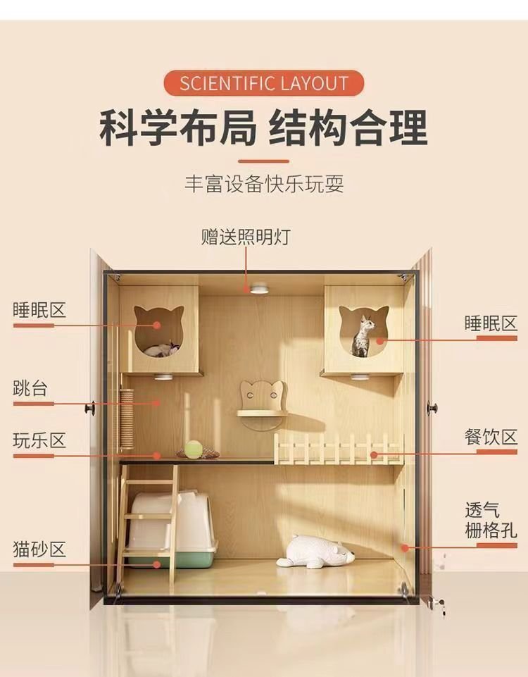 Cat Villa Household Cat Cage Indoor Cat House Cattery Cat Nest Cat Cabinet Luxury Cat House Cat Nest Wooden Cage