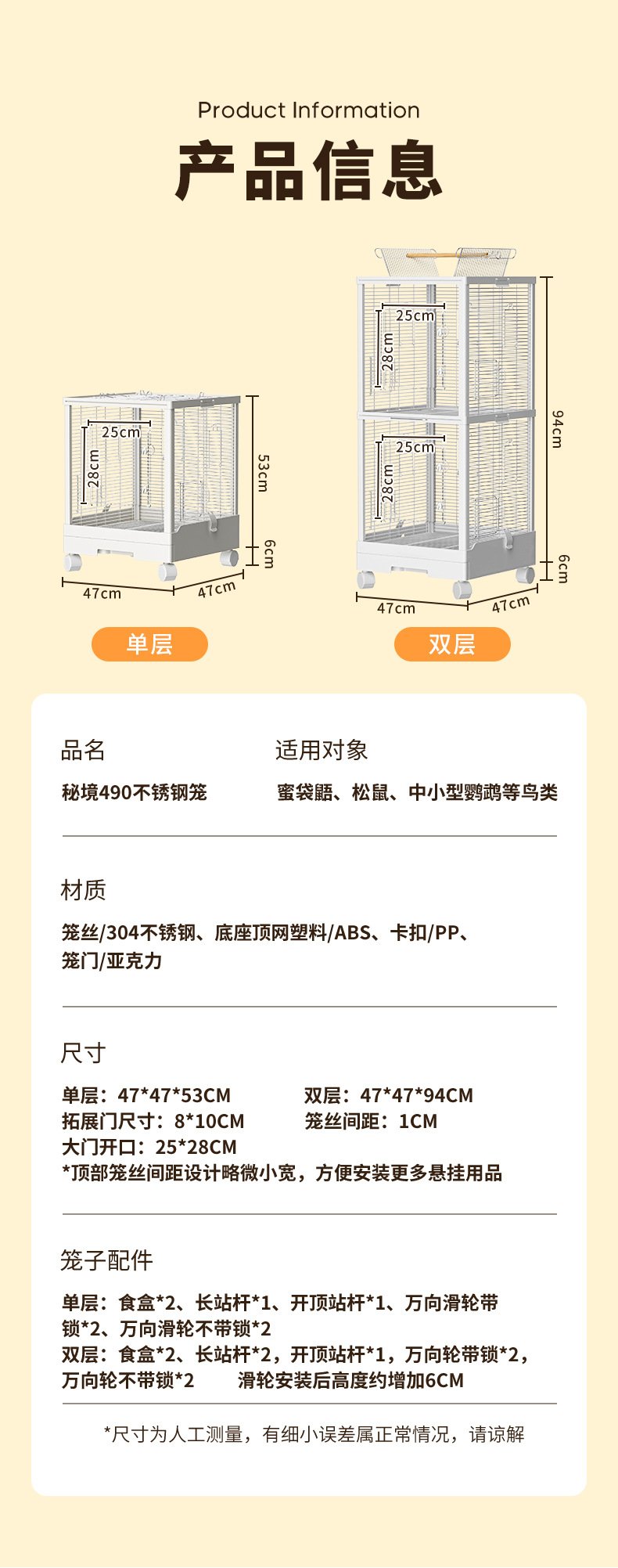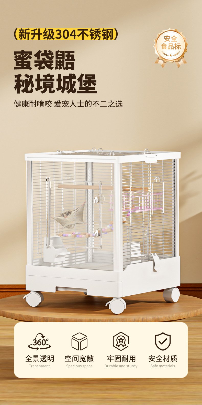 Sugar Glider Cage Breeding Cage Acrylic Horizontal Wire Double-Layer Moving Castle Squirrel Flowering Squirrel Flying Squirrel Luxury Villa
